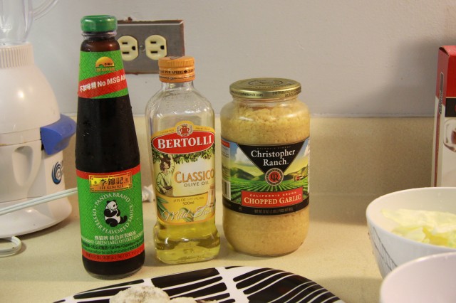 另外還要油一小匙、蒜一顆切碎(買不到新鮮蒜頭,所以借用室友的蒜泥罐頭取代)。